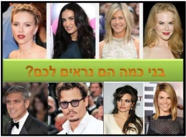 כאן אתם נכנסים לתמונה גולשים יקרים. כיתבו לי מה לדעתכם הוא הסממן שמשפיע על המראה וגורם לו להיראות צעיר, מה לדעתכם הסממנים האופייניים לגיל צעיר ואשר משתנים לרעה עם ההתבגרות וההתקדמות בשנים.