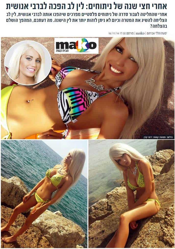לאחר שעברה סדרת ניתוחים שערכה כחצי שנה אצל ד"ר אבישי וינברגר, לין לב השלימה את המהפך והיא כיום הברבית הראשונה כחול לבן!